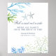 Affiche de mariage sur le thème de la mer marine et blanche, avec des fougères de mer, des algues et des étoiles de mer, conçue pour être rapidement et facilement customisée aux détails de votre événement.