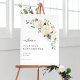 Bienvenue aux invités à votre événement avec ce panneau d'accueil baby shower personnalisable. Il présente un bouquet floral aquarelle de roses blanches et des hydrangées aux accents de verdure. Personnalisez en ajoutant les détails de votre événement. Ce panneau d'accueil fleuri est parfait pour les baby showers de printemps et d'hiver. Des éléments correspondants sont disponibles.