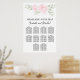 Belle carte de sièges fleuris rose vif pour un mariage. Deux grandes roses roses rousses paraissent belles contre un feuille vert sage. S'il vous plaît trouver votre siège est écrit dans une police simple et élégante. Les noms de mariée et de mariée sont écrits ci-dessous dans une police de caractères romantique. Il est très facile de modifier ces listes et les listes de tableaux ci-dessous.