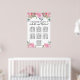 Belle carte à fleurs roses pour un mariage d'été ou de printemps. Les fleurs roses foncées et lumineuses paraissent magnifiques face à une variété de verdure. S'il vous plaît trouver votre siège est écrit dans une police simple et élégante. Les noms de mariée et de mariée sont écrits ci-dessous dans une police de caractères romantique. Il est très facile de modifier ces listes et les listes de tableaux ci-dessous.