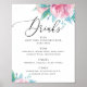 Poster Aquarelle rose rose floral script mariage boissons
