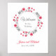 Poster Aquarelle rouge, gris, couronne de fleurs