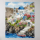 Cette impression d'art présente un portrait aquarelle de Santorin, en Grèce.