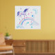 Photographie de l'aquarelle et de l'arc-en-ciel par l'artiste Cheng Jing. La couleur arrière - plan blanche. La couleur arrière - plan peut être personnalisée. Bleu et violet, licorne, arc-en-ciel, lune et étoiles. Pépinière. Décor des chambres Ado.