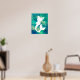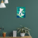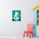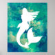 Affiche en silhouette de sirène blanche couleur aquarelle couleur océan.