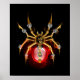 Araignée mécanique à vapeur avec or, engrenages en laiton et lampe en verre rouge sur un arrière - plan noir. Style Steampunk.