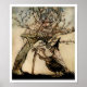 Belle illustration d'Arthur Rackham pour un vieux conte de fées anglais, "The Two Sisters". Une soeur était gentille, l'autre pas si gentille. La gentille soeur a aidé un arbre à se tenir droit, et en retour l'arbre a promis d'aider la fille si elle le pouvait pendant sept ans. L'illustration est celle de la fille gentille cachée par l'arbre pour éviter la méchante sorcière.