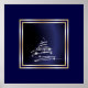 Arbre Abstrait De Noël Argent Sur Bleu. Un design de Noël élégant et élégant, avec une bordure en or, avec un arbre de Noël argenté abstrait avec des perles et des étoiles sur un arrière - plan bleu brillant.