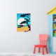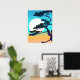 Poster dans une silhouette d'inspiration japonaise d'un cyprès, encadrant une pleine lune, contre un aqua et le ciel orange corallien