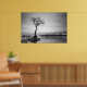 Cette photo en noir et blanc présente une longue photo d'exposition d'un arbre solitaire privé de feuilles en hiver, dans la baie Millarochy, au Loch Lomond.