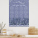Carte de sièges mariage bleu gris hiver et blanc neige avec jusqu'à 12 tables. Idéal pour une réception de mariage d'hiver pour aider votre client à trouver sa place. Il présente un arbre d'hiver peint à la main par l'art du lac de Sarah Trett exclusivement pour www.mylittleedenweddings.com seulement sur zazzle.