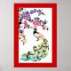 Poster Arc-en-ciel, paon noir et fleurs de cerisiers