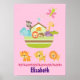 Une affiche personnalisée avec une arche d'animaux mignons remplie d'animaux sauvages sur un fond à pois roses. Un papillon, un lion et quelques tigres traînent également à l'extérieur du bateau. Illustration d'art mignon de style de nurserie.