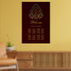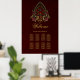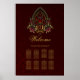 Arche gothique aux crânes. Contre un mystérieux arrière - plan rouge, une grande arcade gothique s'élève majestueusement, décorée de détails ornés. Les deux grands piliers, ornés de sculptures délicates, donnent à l'image une élégance poignante. Au milieu de l'arcade brille un impressionnant vitrail dont le motif central est une araignée symbole de patience et de créativité. Flanquée de deux crânes dorés, rappelant à la fois l'éphémère et l'amour éternel, l'arcade captive le spectateur et promet une célébration pleine de mystère et de fascination.