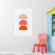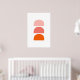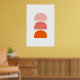 Trois arcs du milieu du siècle empilés verticalement dans une palette rose, corail et orange.