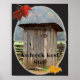 Une maison de campagne rustique entourée de montagnes et de feuilles d'automne. Intitulé Redneck Reest Stop.