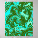 Cette oeuvre d'art numérique abstraite présente un mélange fascinant de teintes vertes et bleues, créant un effet fluide et marbré. Les motifs tourbillonnants s'écoulent sans heurts, ressemblant au mouvement des liquides ou des textures de pierre naturelle. La combinaison de courbes organiques et de transitions douces donne à la pièce une qualité dynamique et hypnotique, ce qui en fait une expérience visuelle attrayante.