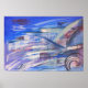 Poster Art Abstrait bleu rose et gris