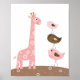 Illustration mignonne de girafe et trois oiseaux art de nurserie.