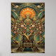 Poster Art Deco Cherry Blossom Tree Throne Gold Teal