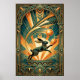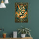 Poster Art Deco Leaping Rabbit Gold & Teal Art