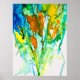 Belle peinture originale d'art floral abstrait orange coloré. Couleurs vives et vibrantes. Beaux-arts aquarelle.