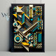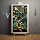 Un art abstrait coloré sur l'arrière - plan, dans le style art déco formes géométriques, détails hyper réalistes, cyan foncé et or, objets déconstruits, motifs audacieux et typographie, scènes de foule isométriques et détaillées