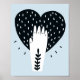 Caractéristiques de l'affiche Scandinavian / Nordic folk art noir et blanc main et le coeur graphique sur bleu clair arrière - plan