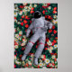 Poster Astronaunt en Fleurs rouges et blanches