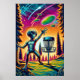 Un extraterrestre alien jouant au disc golf. Art de golf à disque abstrait coloré.