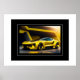 Poster shown with a photo print of a beautiful yellow luxury sports car.