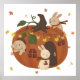 Une jolie illustration de lapins et un citrouille avec des feuilles en chute colorée en automne