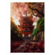 Poster Autumn Maple Pagoda Temple Staircase Glow