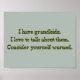 Ceci dit, "J'ai des petits-enfants. J'adore en parler. Considérez-vous averti."