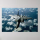 Super photo d'un avion de chasse dans le ciel. Grande capture avec de beaux nuages et des îles visibles sur le sol.