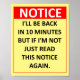 Je serai de retour dans 10 minutes mais si je ne suis pas juste de lire cet avis à nouveau