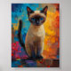Poster Azure-Gazed Siamese — Vivid Brushstroke Portrait