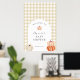Affiche de bienvenue baby shower avec arche de citrouilles d'aquarelle et motif en vichy neutre. Customisez avec vos informations pour que la mère soit. Cliquez sur "cliquer pour customiser plus loin" pour modifier le style, la taille ou la couleur de la police.
