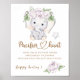 Poster Baby shower d'aquarelle bébé éléphant et fleur