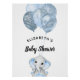 Notre affiche de bienvenue Baby shower est une façon parfaite d'annoncer l'arrivée d'un nouveau bébé garçon! Décoré de ballons bleus et argentés et d'un mignon petit éléphant. Personnalisez avec la mère pour être le nom de la mère. Arrière - plan blanc. Ce poster peut servir de poster de bienvenue ou de décor mural pour votre baby shower.