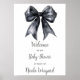 Jolie affiche baby shower avec un ruban arc coquette noir. Les mots peuvent être changés en fonction de vos propres détails ou exigences