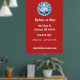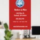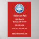 Élégante affiche murale avec un badge de salon de coiffure rouge blanc et bleu rétro sur arrière - plan rouge. a un look moderne et peut être un excellent outil de marketing pour votre salon de coiffure ou d'autres hommes. Personnaliser avec les détails de l'entreprise