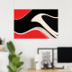 Un design abstrait unique avec des tons rouges, blancs et noirs.