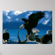 Bald Eagle sur une affiche en rondins de l'océan Vient avec un bel Aigle Bald sur une rondelle sur la plage avec l'océan et la montagne à l'arrière-plan et d'autres aigle autour de lui...Voici une belle photo sur cette affiche