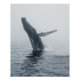 Photo d'une baleine à bosse qui saute de l'océan. La couche marine brumeuse n'a pas encore été relevée. Le ciel et l'océan sont presque les mêmes couleurs bleu et gris, seule la vague blanche créée par la baleine donne la séparation du ciel et des eaux. Complétez cette série d'images avec les photos disponibles de cette faune expérimentée en scène d'action. Recherchez ces titres, 'Humpback Whale Calf' et 'The Bird that Woke the Whales'. Copyright © 2024 Kimberly J Tilley. zazzle.com/store/developingnature