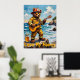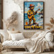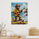 Cette oeuvre imaginative présente un ours, véritable "Ours de la Mer", avec casque de pompier et lunettes de soleil, jouant captivamment une guitare acoustique sur un affleurement rocheux au bord de l'océan. Des vagues qui s'écrasent et un ciel bleu avec des nuages épars forment le fond. L'atmosphère vibrante et texturée crée une atmosphère puissante et fantaisiste, rendant cette scène "Love My Honey" vraiment inoubliable.