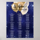 Carte de siège pour une fête d'anniversaire. Un arrière - plan bleu marine. La couleur bleue est inégale. Décoré avec de la poussière de parties scintillant et des ballons d'or Personnalisez et ajoutez les noms des invités. 9 tableaux.