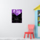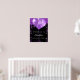 Une affiche de bienvenue pour une Quinceañera, 15e anniversaire, girly et glamour. Un arrière - plan noir décoré de gouttes de parties scintillant couleur violet, look dérapant de peinture, ballons. Personnalisez et ajoutez un nom et un âge. Retour : aucune conception