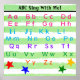 Apprentissage de l'alphabet lumineux et enjoué pour les classes maternelles, de lycée, d'école à la maison ou de salle de jeux. ABC Sing With Me est écrit en haut en typographie noire. Lettres de l'alphabet rose, bleu, violet, vert, orange. Bandes d'aquarelle blanche verte. étoiles rouges, bleues, jaunes, vertes. Filtre utilisé sur des bandes aquarelles pour être de couleur verte. Oeuvre originale et design de TamiraZDesigns.