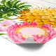 Bannière de Luau Hawaiian à thème mariage avec feuillage tropical, plumeria, hibiscus, ananas et blanc arrière - plan de bois de lave.